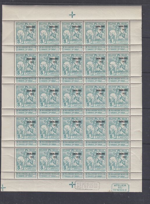 België 1911 - Caritas - OBP : 104 in velletje van 25