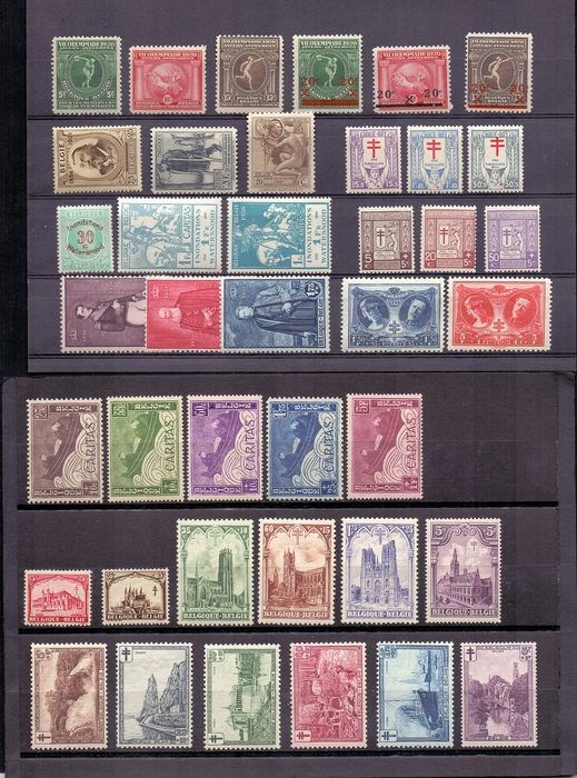 België 1920/1934 - 12 Volledige uitgiften met Landschappen en Kathedralen