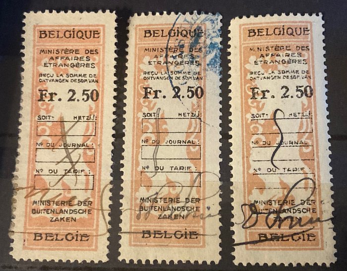 De zegels helemaal onderaan zijn uitgegeven in 1920. De overige items allicht van dezelfde periode 1920/1930.