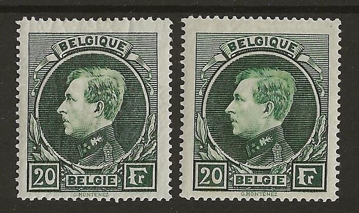 België 1930 - Albert I type Montenez - 20F Grijsgroen en Donkergroen - Mechelse druk (T 14 x 14½) - OBP/COB 290A en 290B