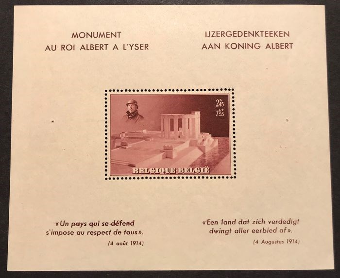België 1938 - BL8A Koning Albert - ZONDER stempel in de rand - POSTFRIS - BL8A