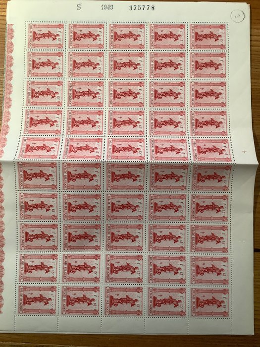 België 1943 - Ambachten - OBP : 615/622 in paneel van 50 met 622V1en V2