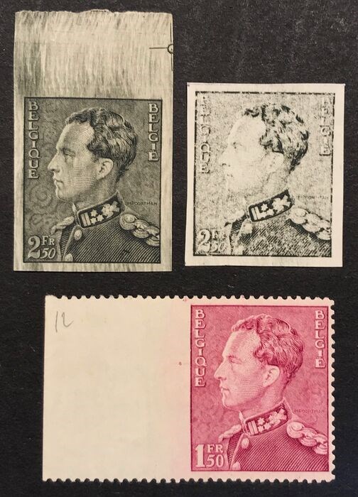 België 1945 - Poortman 1fr50 Rozelila + 2fr50 Olijf - ONGETAND IN PAREN MET ANOMALIËN - CURIOSITEITEN - OBP 429ND + 530ND