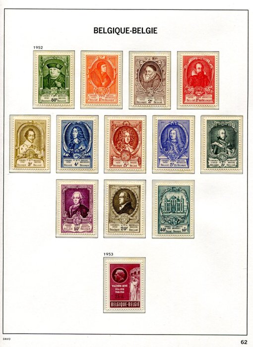 België 1952 - Alle zegels volgens Davo-bladen 62/63