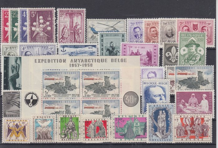 België 1957 - Volledig jaar 1957 (3x) - OBP 1008/1045 + BL 31 (5x)