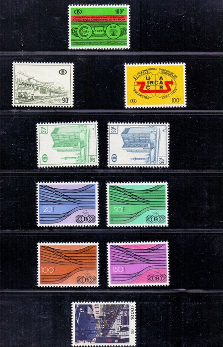 België 1967/1980 - Verzameling spoorwegzegels met Stations van Aarlen en Oostende en goederenwagons - OBP/COB TR400/454