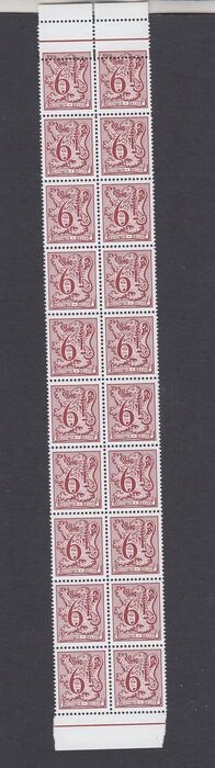 België 1981 - Heraldieke leeuw - OBP : 1998 in blok van 20 met zeer opvallende tandingfout op 2 bovenste zegels