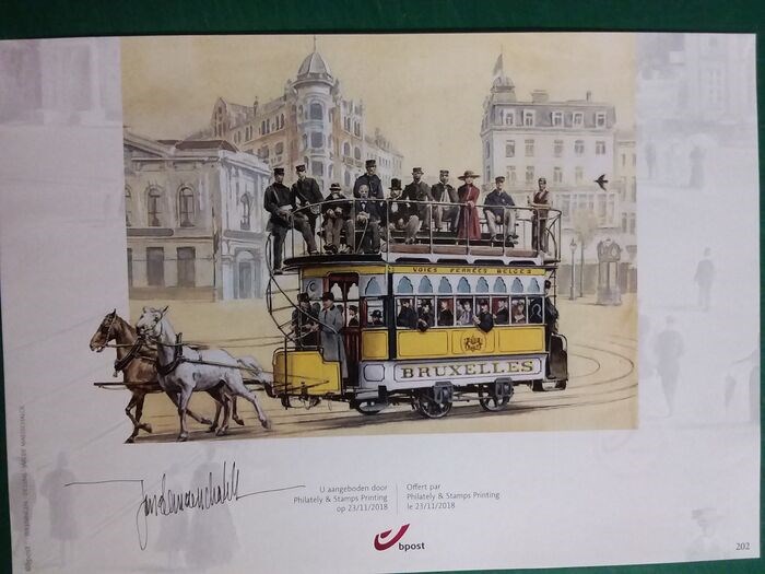 België 2018 - speciaal genummerd herdenkingsblad kunstenaar Jan De Maesschalck - 150 jaar eerste paardentramlijn