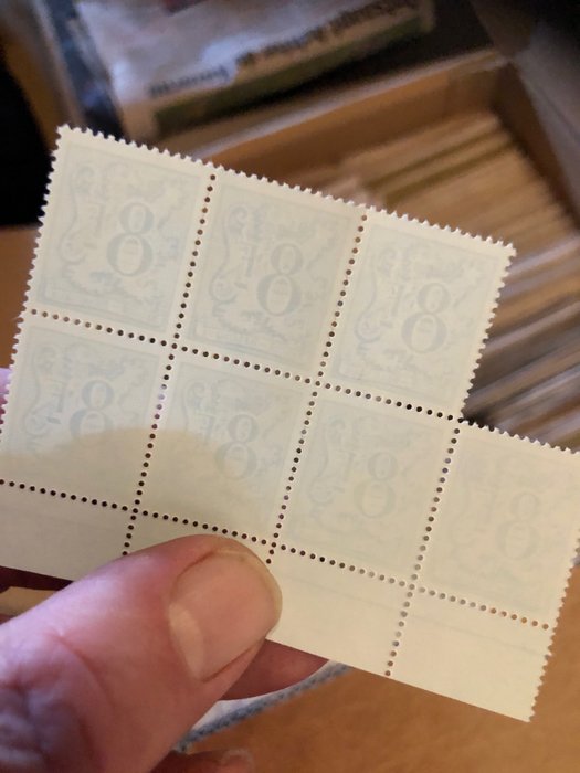 Doos met diverse dubbele postzegels, gesorteerd in zakjes met jaartal vermeld met totale frankeerwaarde 44120 bfr=1092 euro
