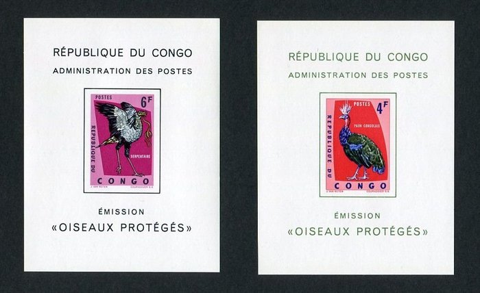 Belgisch-Congo 1963/1967 - Luxevelletjes 'Beschermde vogels' en omgekeerd paar 'Montreal' - OBP/COB LX488/490 - 651B-Cu