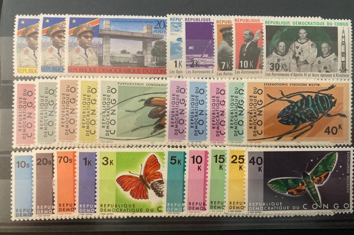 DR Congo 1970/1971 - 2 Volledige jaargangen met reeksen Kevers, Vlinders, Bloemen, Apen e.a. - tussen OBP/COB 712A en 799 + BL23