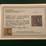 Baden 1851 - 1 Kreuzer eerste oplage met fotocertificaat BPP - Michel 1a
