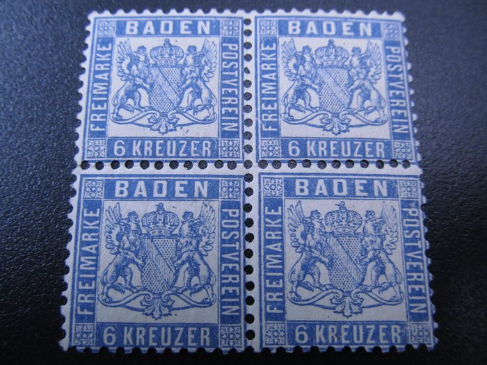 Baden - AD-Baden Nr. 19a, 1862, Wappen weiss,Viererblock, postfrisch, BPP Befund