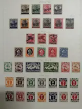 Goed bemand in alle periodes en met tls. betere stempels en zinnen. Zeer netjes gemonteerd op 20 blanco pagina's.