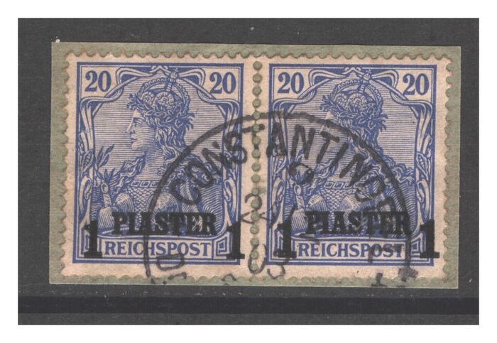 Duitse Post in Turkije, MiNr. 14 II PF I in paar op stuk Constantinopel 24.2.03.