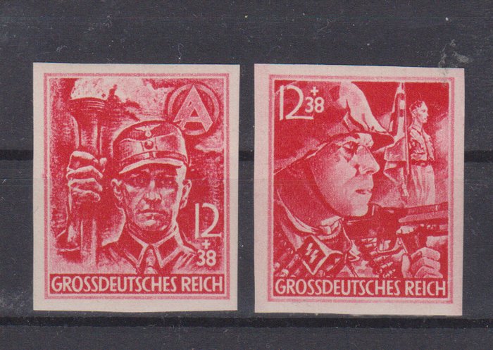 Duitse Keizerrijk 1945 - "SA/SS" compleet, geperforeerd en ongeperforeerd - Michel 909/10 (U)