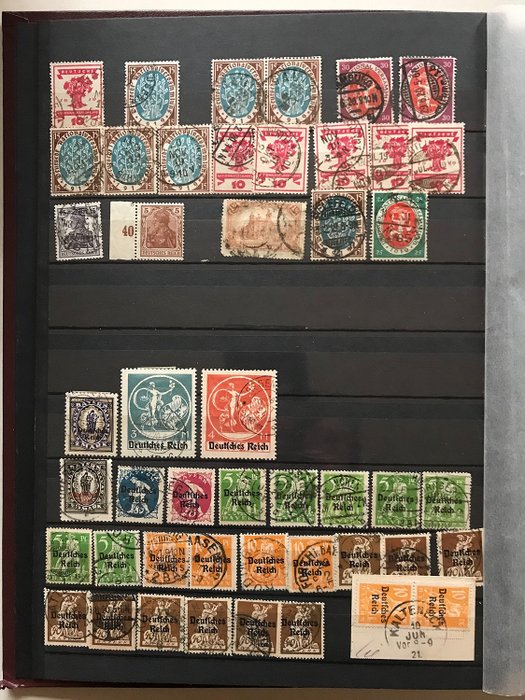 Vrij uitgebreide voorraad "inflatie" in twee insteekalbums. Eén album gestempeld met overwegend betrouwbaar ogende stempels, een ander met waarschijnlijk alleen postfrisse zegels, maar voor de zekerheid ook "ongebruikt" vermeld, omdat niet elke afzonderlijke zegel werd omgedraaid.