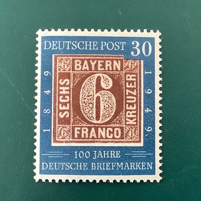 Duitsland, Bondsrepubliek 1949 - 30Pf 100 jaren briefmarken met plaatfout Schantl - Michel 115 f38