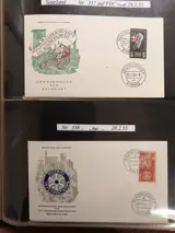 Schone decoratieve FDC collectie o.a. Nr. 260/61 2x op een envelop (slechts 1x FDC + normale set geteld), Nr. 305 op een maximum kaart. Van 1955 tot en met nummers 362-64 en 396 compleet; de 2e "Heuss" serie in de gebruikelijke verdeling over drie FDC's. Daarnaast nog enkele andere documenten (o.a. nr. 441-44 met de originele handtekening van de ontwerper "Meerwald"). Michel waarde (2022) ca. € 1.200,00.