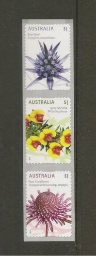 MNH strip zelfklevende postzegels uit Australie,van bloemen, uit 2015.
