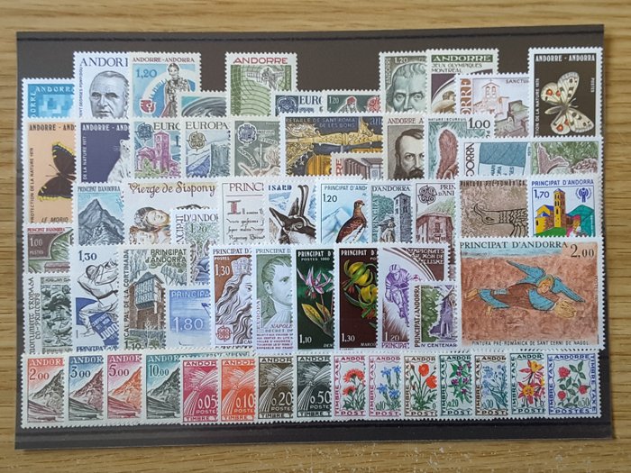 Andorra 1961/1980 - 20 complete years of standard use stamps, airmail and tax stamps - Yvert 153A à 290 sans les timbres non émis, PA 5 à 8, taxe 42 à 52