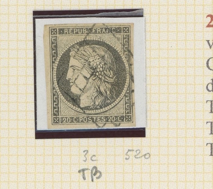 Nr. 1 nieuwe x VG/Sup, nr. 2 Sup met buren, nr. 3 nieuwe xx zwart op zeem (plooi), nr. 4 nieuwe x met certificaat, nr. 5 TB/Sup getekend Calvès en een paar nr. 6 sup.