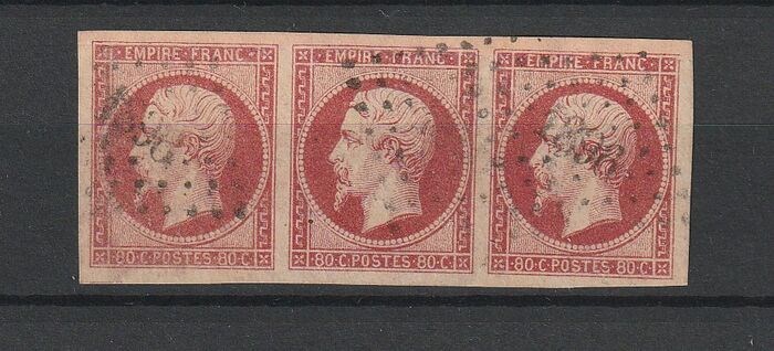 Frankrijk 1859 - Napoléon 80c , bande de 3 - Yvert n°17B