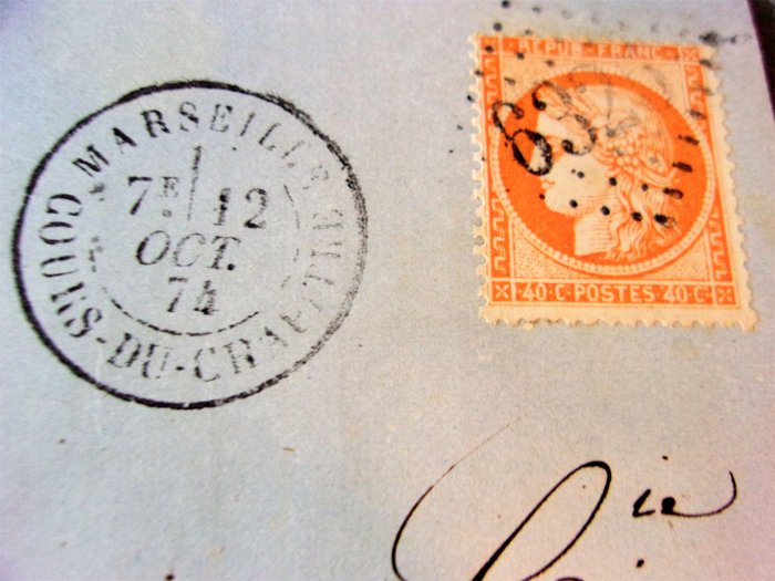 1: Brief van Marseille voor Italië (Genesa - ondertekend) N 38 postzegel met grote cijfers 6325 2: Brief van Draguignan voor Marseille N 29 (ondertekend met correspondentie) poststempel GC 1349 Variety of the Medaillon (zie pijl Case 94A2) 3; Lyon Visiting Card N53f (achtergrondlijn) (getekend) 4: Brief Abilly voor Bordeaux N29B (getekend met correspondentie) poststempel GC 4567 en extra kantoor D'Abilly Type 22 5: Brief van Bonneville voor Annecy (in triple port ondertekend) N32 met correspondentie samen zeer "goed bewaard gebleven" exp: aanbevolen bij ar