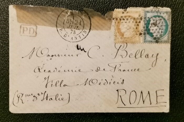 Frankrijk 1873 - Classic letters from France, 1873 Departure from Paris on July 21st, arrival Rome on July 23rd,