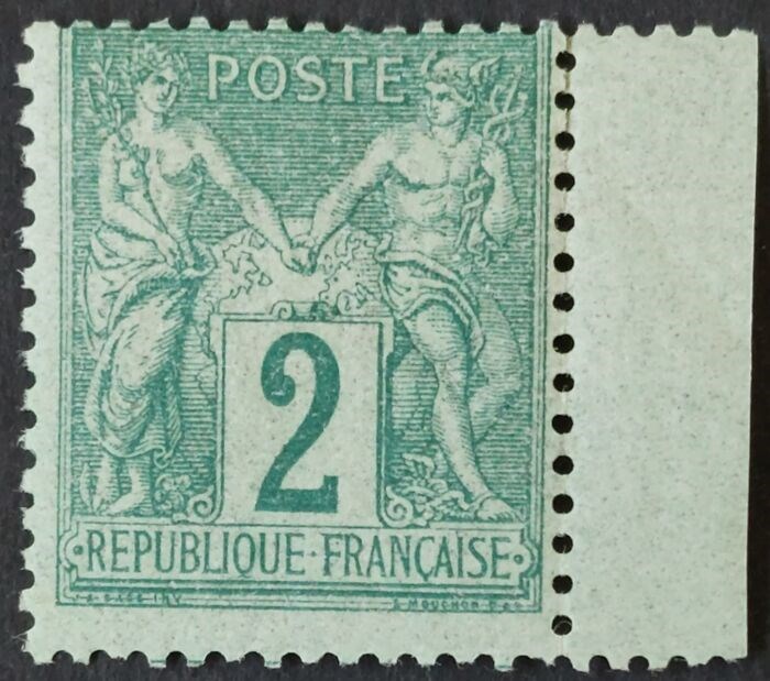 Frankrijk 1876 - ‘Sage’ type II, ‘N under U’, 2 centimes green - Yvert 74