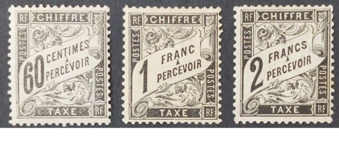 Frankrijk 1881/84 - Tax, Duval type, black, selection of 3 stamps - Yvert Taxes 21, 22 et 23