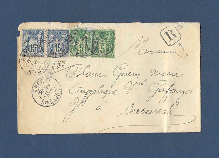 Frankrijk 1897 - Magnifique lettre de convocation au tribunal de première instance d'Annecy de 1897, avec 2 n90+2 n75 - catalogue Yvert&Tellier édition 2021