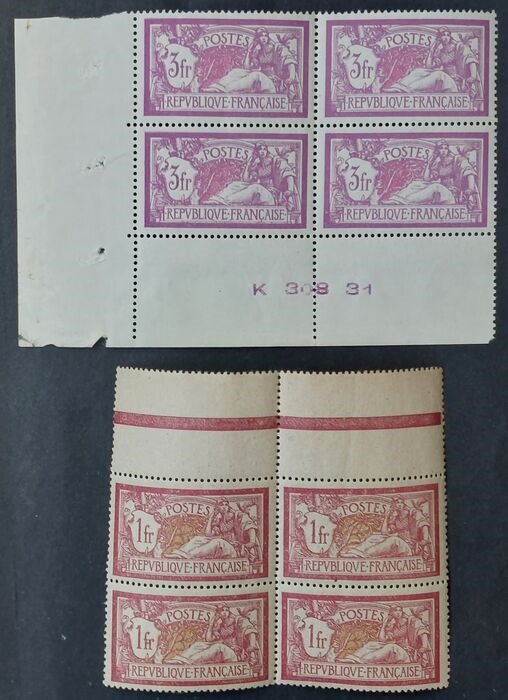 Frankrijk 1900/31 - Merson, selection of 2 stamps in blocks of 4 - Yvert 121 et 240