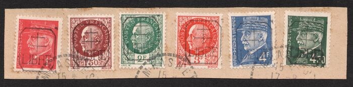 Frankrijk 1944 - Liberation of Measnes, No. 1 to 6, cancelled on fragment. Beautiful quality. - Mayer