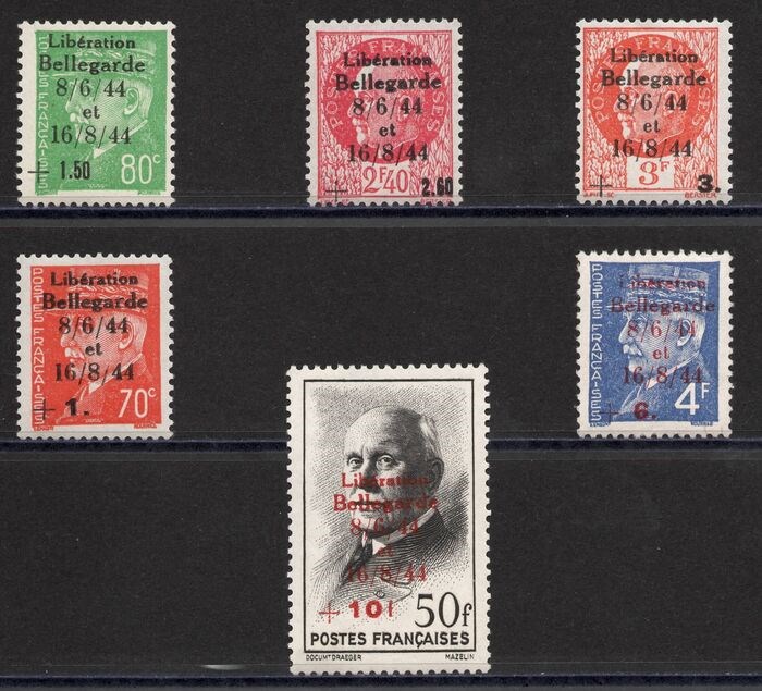 Frankrijk 1944 - Lot of stamps of the Liberation of Bellegarde from No. 1 to 6, mint*, signed. Beautiful. - Mayer