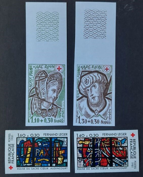 Frankrijk 1979/81 - Selection of 2 Red Cross series, imperforate stamps - Yvert 2070-71 et 2175-76