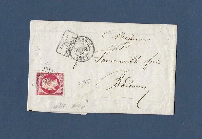 Frankrijk - Magnifique lettre à destination de Tarbes, avec 1 timbre de 80c carmin clair n°17 A - catalogue Yvert&Tellier édition 2021