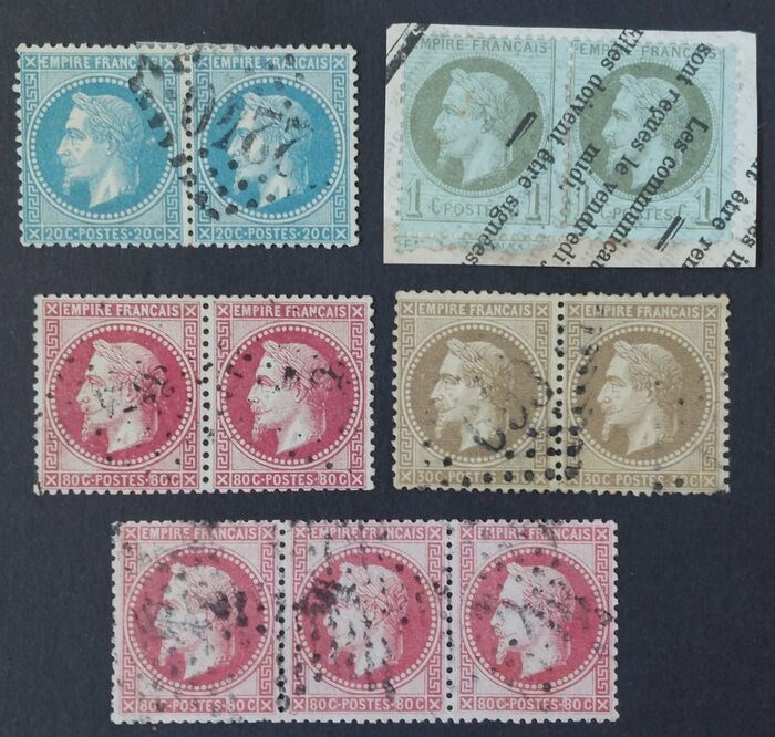 Frankrijk - Napoleon III with laurels, lot stamps in strips