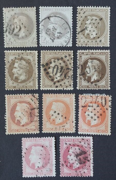 Frankrijk - Napoleon III with laurels, lot stamps with nuances