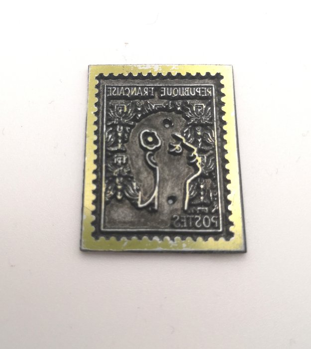 Zinken drukplaten ongeveer 2 MM dik, reliëfpatroon voor de kopie van Cocteau's Marianne, de andere in offset. gebruik zeker gewijd aan de pers van de tijd.