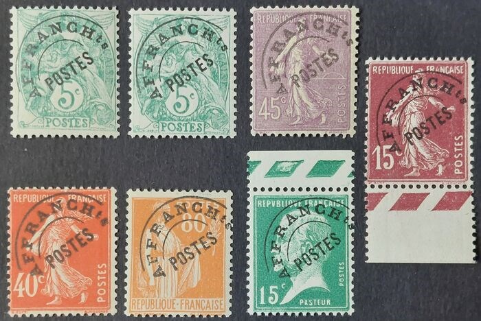 Frankrijk - Pre-cancelled, selection of 7 stamps - Yvert préoblitéré 41, 41a, 46, 53a, 64, 65 et 74