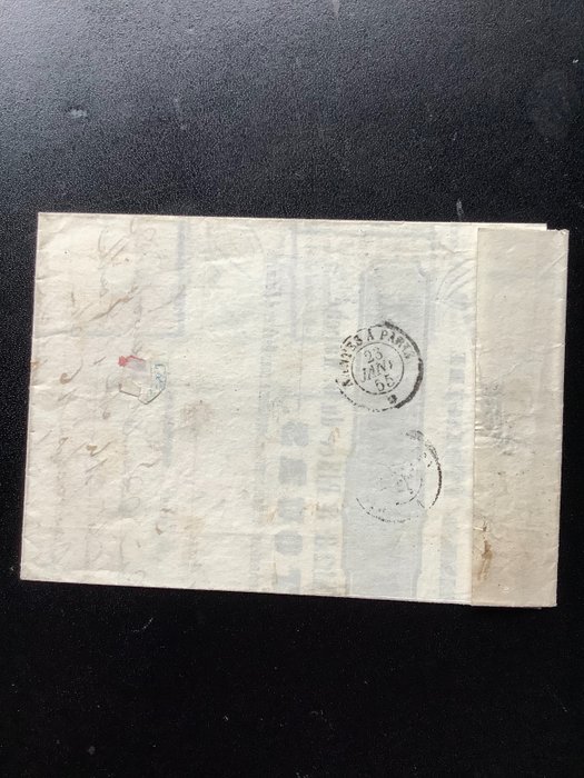 Zeer mooie letter met Napoleon 14A blauw op groen