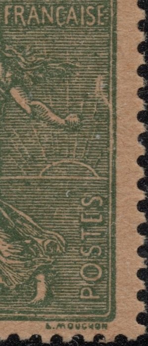 Frankrijk - Yvert 130j variety not listed "R" without shadow box 3/8/10 holding to normal + ‘POSTCS’ - YVERT 130j Semeuse 15c Type IV papier GC avec variétés