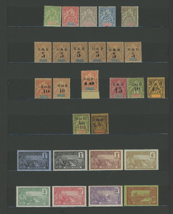 Zeer mooie collectie in Nieuw, inclusief nieuw zonder scharnieren (een paar geannuleerd in de oude), redelijk gevolgd door Guadeloupe vóór de DOM sinds de nr. 1 met oud, Post, PA en Belastingen.