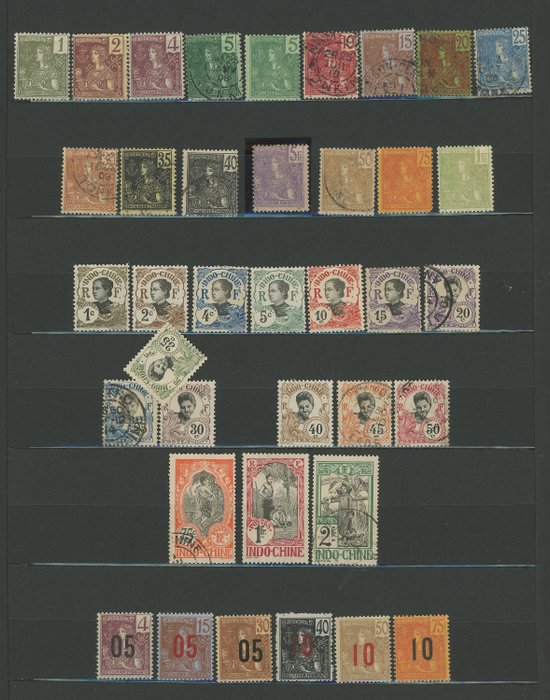 Zeldzame nr. 6 en 7 van Annam en Tonkin, Groepstypes, complete series 90/95 en 123/146, algemeen redelijk gevolgd...