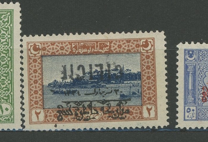 Een set die enkele interessante waarden bevat, waaronder de zeldzame nr. 7 (1Pi overzees, NSG), nr. 43 negen xx, variëteiten met omgekeerde overdrukken, "OMF-overdrukken", enz....