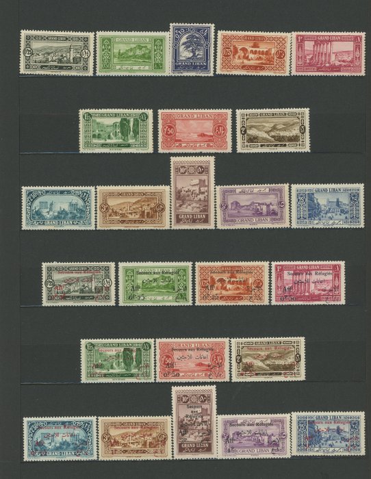 Zeer mooie collectie in nieuwstaat, inclusief nieuw zonder scharnieren (een paar uitgewist), uit Groot-Libanon vóór de onafhankelijkheid sinds n°1, Post, PA en Belastingen.
