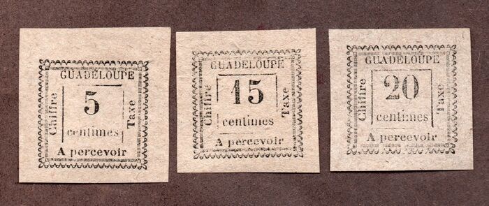 Guadeloupe: belastingen 6b,8b,9b (referentie Yvert 2022) essays op nieuw crèmekleurig papier zonder gom zonder scharnier, TTB.