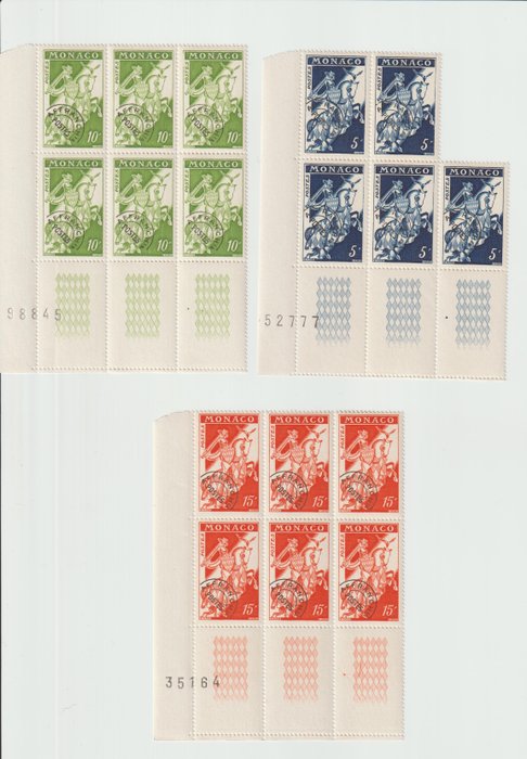 - Voorgestempelde nummers 11A (blok van 5 + eenheid), 12B, 13A, 15 en 17 in blokken van 6 bladhoeken. en eenheid
