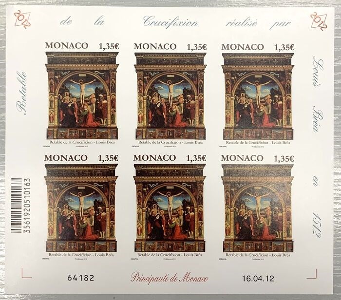 Monaco 2012 - €1.35 Altarpiece of the Crucifixion (L. BREA), imperforate in sheet of 6, superb and rare - Yvert & Tellier n° 2838